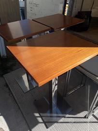 tavoli quadrati per ristorazione con gambo in acciaio, quattro tavoli 60x60xH103,uno 70x60xH103 cm,con piano leggermente rovinato come si vede in foto,usato in buone condizioni.60 euro ciascuno.