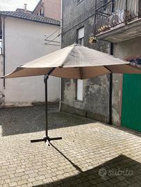 1 ombrellone 3x3mt da esterno color tortora recrinabile e roteabile completo di piastre in graniglia €100,00 come da foto.