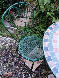 tavoli mosaico con due sedie da esterno. 150 euro ogni set.
