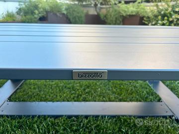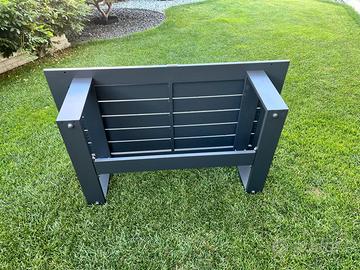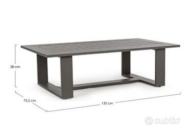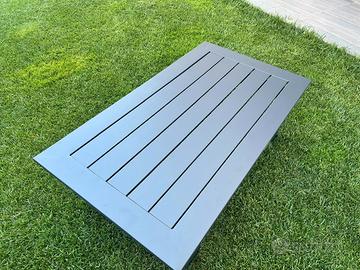 Misure 130 cm (larghezza) / 73,5 cm (profondità) / 38 cm (altezza) Alluminio verniciato a polvere color antracite, come nuovo, nessu segno di usura mai utilizzato. no spedizione consegna a mano.