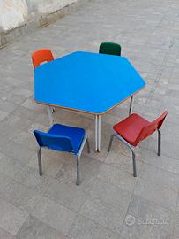 vendo un tavolino forma esagonale con 4 sedie molto resistenti fino a 150 kg per bambini ( volendo vi potete sedere pure voi con i bambini per mangiare o giocare assieme a loro più regalo giocattoli misure tavolo 100×90×53 tutto in ottime condizioni vendo 35 euro trattabili non perditempo chiamare al numero 338 3524289