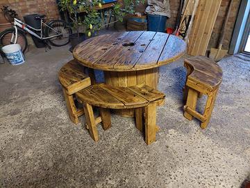 Vendo tavolino con sgabelli fatto con bobina filo elettrico pulito livigato e verniciato.