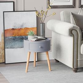 Tavolino da Caffè Rotondo con Cassetto Moderno, Grigio, Ф38x45cm