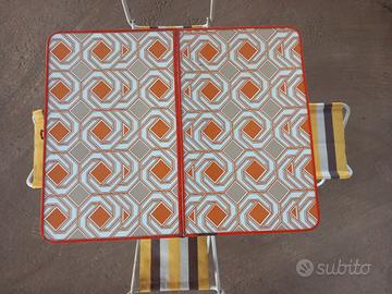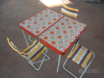tavolino vintage da campeggio pieghevole diventa una valigia con quattro seggioline all'interno