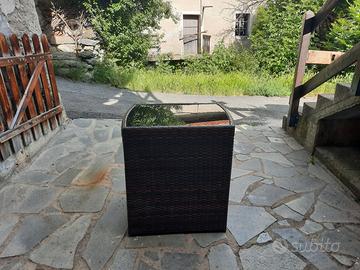 Tavolino da esterno con ripiano in vetro e 2 sedie con cuscini a incasso Misure: Altezza 73 cm Larghezza 50 cm Lunghezza 66 cm Ritiro Aosta e dintorni, no spedizione