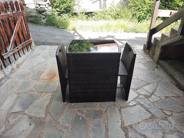 Tavolino da esterno con ripiano in vetro e 2 sedie
