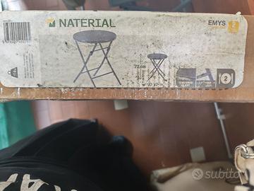 Tavolo da giardino pieghevole Emys NATERIAL con la struttura in acciaio verniciato e il piano tondo in vetro temperato. Colore grigio antracite. Diametro del piano: 60 cm. Altezza del tavolo: 72 cm Per 2-3 persone, è adatto ad ambienti di piccole e medie dimensioni come balconi, verande, terrazze, gazebi e particolari angoli del giardino Pieghevole, quindi facile da piegare e aprire, può essere riposto molto facilmente per garantire un massimo risparmio di spazio quando non utilizzato. Facile da pulire. Il tavolo è già montato Vendo uno nuovo con scatola e uno usato poco. 40€ a pezzo o 70€ tutti 2