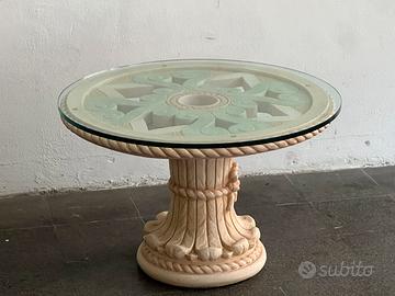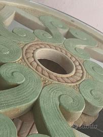 Tavolino decorativo da esterno con motivi geometrici. Pianale in vetro diametro 70,5 cm Altezza da terra 46 cm. Da ritirare presso Sarnico Bg
