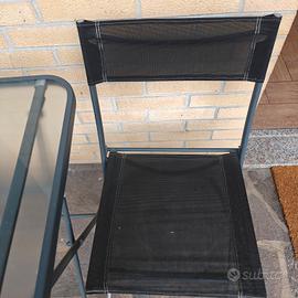 Vendo per inutilizzo tavolino da giardino in vetro temperato pieghevole + due sedie pieghevoli. Prezzo trattabile