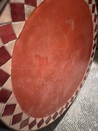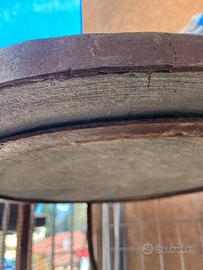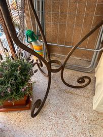 Tavolino per esterno con base in pietra . Piede in ferro battuto da sistemare( arrugginito). Diametro 60 cm x altezza 73.