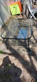 tavolino in ferro battuto e cristallo