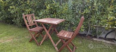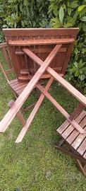 Vendo Tavolino pieghevole in legno con 2 sedie pieghevoli. Misure: 60x60 - da riverniciare. Euro 30 Solo se interessati