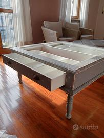 Tavolino con cassetto e piano di appoggio in vetro dimensioni cm 90x90