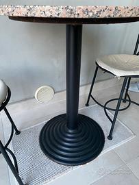 Tavolino rotondo con piano in marmo granito e base e piedistallo in ferro colore nero Misure Piano appoggio diametro cm 70 Altezza da terra cm 78 No spedizione