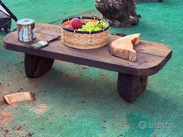 Vendo tavolino artigianale realizzato interamente a mano in legno massello di pero, un pezzo unico dal carattere rustico e naturale.