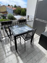 e due sedie in metallo lavorato a maglia fine in stile moderno, ultraleggere di marca Bonsaglio,