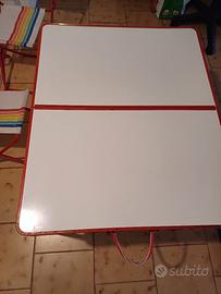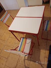 Vendo tavolino pieghevole con 2 sedie e 2 sgabelli.Misure aperto 80x64 e chiuso 64x40 Ottimo stato