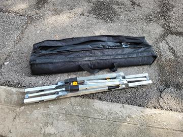 Per inutilizzo vendo tavolino pieghevole interamente in alluminio, misure 80x50cm ed altezza regolabile (va bene sia con divanetti da giardino che con sedie ad altezza standard). Fornito con la sua borsa e con un retino da tendere come portaoggetti sotto il piano del tavolo.