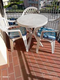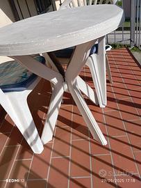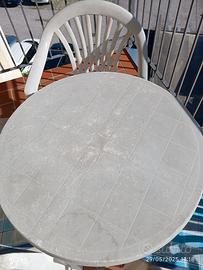Vendo tavolino rotondo in plastica, ideale per balconi, terrazzi, giardini o piccoli spazi esterni. Perfetto per colazioni all'aperto, caffè o come punto d'appoggio.