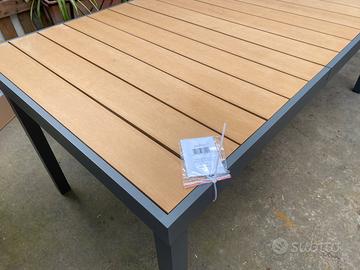 Struttura in alluminio verniciata a polvere (poliestere). Piano in polywood (materiale composito dall'aspetto simile al legno).