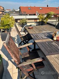 Tavolo in legno ammalorato mis 210-300x110 comprensivo di 6 sedie in legno anch’esse da sistemare. Non ci sono parti rotte. Tutto solido ma col tempo la superficie del legno si è ammalorata. Solo ritiro di persona. Il tavolo, smontato, deve passare da una scala a chiocciola. Rimango a disposizione per ulteriori chiarimenti