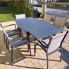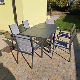 1 tavolo da giardino allungabile in alluminio e 6 sedie.