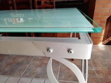 Tavolo in vetro cristallo 11mm serigrafato allungabile misure chiuso 160x90cm aperto arriva a 205cm ideale fino a 10 persone... Con struttura in acciaio argento metallizzato da 6 mm indistruttibile... Comperato in mobilificio un annetto fa per oltre 1200 euro..vendo a soli 450 euro per informazioni 3295999525