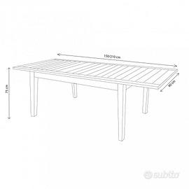 Tavolo modello Ribot allungabile, dimensioni 150/210x90 cm in Teak, molto resistente e durevole, con un'estetica moderna e funzionale. Perfetto per il giardino e non solo.