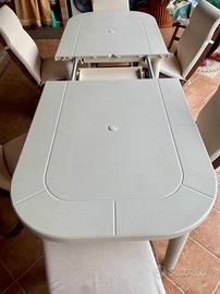Tavolo in resina allungabile misura chiuso cm 220 X cm 100. La presenza di due tubolari metallici di guida presenti sotto al ripiano permettono l’allungamento fino a 100 cm in più e rendono il tavolo stabile con una lunghezza finale di cm 320. Disponibile con ritiro sul posto