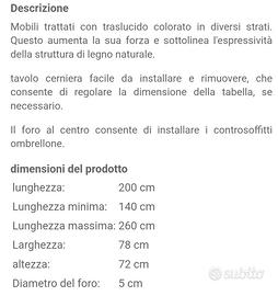 Tavolo da esterno, con foro per ombrellone, sedute da 4 a 8 persone, allungabile, usato ma tenuto benissimo. Ritiro solo a mano, no spedizione.