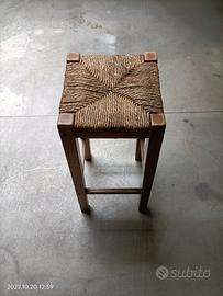 Tavolo artigianale con 4 sgabelli bar.