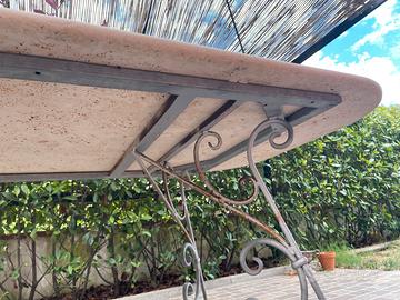 Tavolo Artigianale in Travertino e ferro battuto.