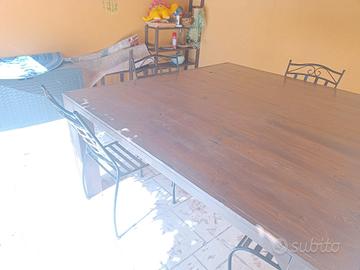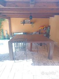Vendo tavolo quadrato in legno realizzato su misura da falegname, dimensioni 175 × 175 cm. È stato utilizzato principalmente in esterno, ma si presta perfettamente anche per taverna, sala da pranzo, veranda o giardino. La struttura è molto solida e robusta, costruita con lavorazione artigianale e materiali di qualità. Grazie alle dimensioni generose può ospitare comodamente 8–10 persone, perfetto per pranzi e cene conviviali. Il tavolo presenta normali segni di utilizzo dovuti all’uso esterno, ma rimane strutturalmente perfetto e molto resistente.