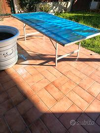 Lotto di 4 banconi in alluminio con pannello in vetroresina 2x1 metri per 80cm di altezza.il prezzo indicato è per singolo tavolo, se si acquista l'intero lotto il totale è di 260 euro.
