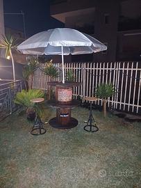 tavolo bar stile officina con ruote ed ombrellone disponibili 3 tavoli