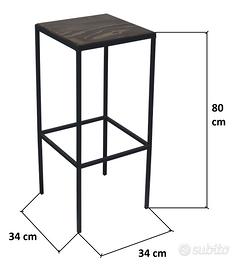 DIMENSIONI SGABELLI: Larghezza 34 cm - Profondità 34 cm - Altezza seduta 80 cm - Altezza poggiapiedi 30 cm - Peso 4 kg.