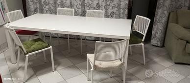 Grande tavolo cm.100x210 h.72 in metallo verniciato bianco con 6 sedie.