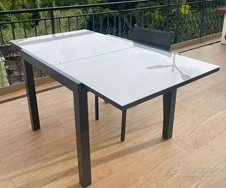 Vendo tavolo da esterno allungabile con piano in vetro Per 6 persone Colore antracite Misure 90/160x 90cm Disponibili a parte 4 sedie colore antracite