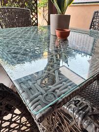 Tavolo con ripiano in vetro e 4 sedie