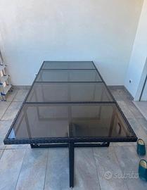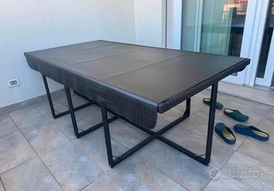 Vendo tavolo con 8 sedie a scomparsa come nuovo, usato solo due volte perché troppo ingombrante per i nostri spazi. Lunghezza 225 cm Altezza 75 cm Profondità 110 cm I cuscini delle sedie sono sfoderabili e lavabili in lavatrice. Regalo anche tovaglia in pvc per coprirlo e fodera.