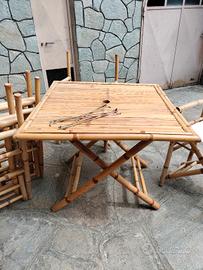 Sedie n. 4 in bambù robuste e comode ,richiudibili ,con seduta in tessuto smontabile .
