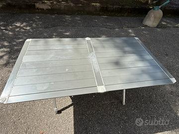 Mercury Roller 4 Brunner tavolo da campeggio pieghevole in alluminio. Ripiano a listelli verniciati antiriflesso ed arrotolabili grazie alla presenza di snodi laterali. Stabile e robusto con una gamba regolabile in altezza. Montaggio semplice e rapido. Completo di custodia. Dimensioni da aperto cm 108,5x71x71, da chiuso cm 108,5x27x12. Peso kg 4,6.
