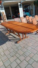Tavolo da esterno da 8 persone in legno pregiato, sempre rimasto al chiuso. Dimensioni 300x110 cm Solo ritiro a mano Disponibile alla visione chiamando il numero 3480876784
