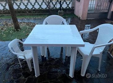 Tavolo esterno da giardino 4 posti completo di 3 sedie. 2 adulti 1 bambino. Vendo pulito perfettamente