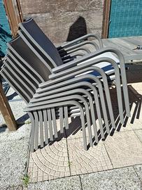Tavolo da esterno marca garden team con base in alluminio e piano in piastrelle effetto legno mis. 220 x 100 Completo di 8 sedie in alluminio e fibra marca garden team + copri sedie nero + 8 cuscini come foto Comprato tutto al viridea