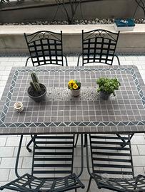 Tavolo da esterno con mosaico + 4 sedie