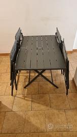 Vendo tavolo da esterno pieghevole in alluminio color antracite misure 75x120x70h compreso di 4 sedie a 100euro non trattabili.