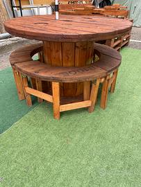 Tavolo in legno trattato diametro 1000mm altezza 650 mm n 4 sgabelli altezza 390 mm