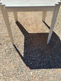 Tavoli bianchi da esterno per giardino o terrazzo, misura del piano 74cmx74cm, altezza 72cm. Usati ma in buone condizioni; lavabili. 16 pezzi disponibili. Prezzo migliore se acquistati in quantità.