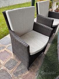 Vendo tavolo ovale da esterno in rattan marca “giardinia” con ripiano in vetro e sei poltrone con cuscini. Dimensioni 220cmX110cm. Ottimo per pranzi in compagnia, pratica pulizia grazie al vetro di copertura.